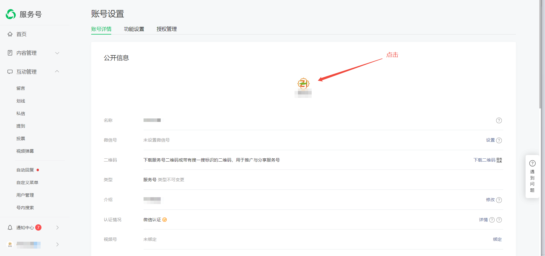 1、打开该网址:https://mp.weixin.qq.com/,先登录服务号--设置(请根据下图操作),操作完了服务号在操作小程序一样的操作,小程序是修改小程序头像,多一步管理员扫码(这里省略)