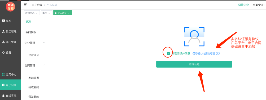 认证通过后,进入电子合同--概述页面,刷新,可以看到个人和企业皆已通过认证